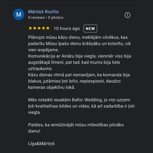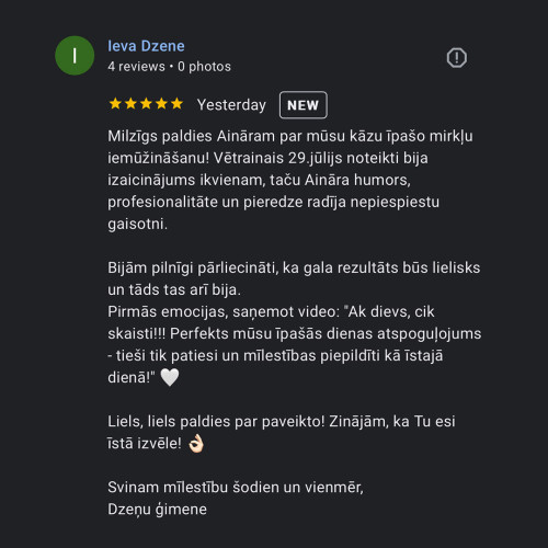 Mēs radam sajūtas un emocijas. Jau vairāk kā 460 pāri ir uzticējušies mums un saņēmuši daudz pozitīvas emocijas.